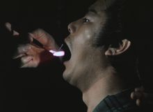 携帯用の花火を悪人の口の中に入れ、胃の中で爆発させる。爆発の様子を透視映像で映して漫画チックに見せていたけど、凄まじいですねこれ。悪人を打ち上げ筒に放り込んで、打ち上げ花火と一緒に打ち上げたエピソードもありましたが(苦笑)。ちなみに、花火師の殺し屋・天平を演じたのは、現・千葉県知事の森田健作氏。