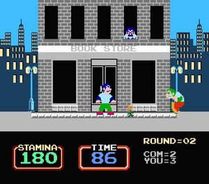 ストリートファイターなど最近のビジュアル志向の格闘ゲームに疲れた方、もっとまったりじっくり静かに時間をかけて殴り合いたい方、向けのなつかしのアクションゲーム。男同士の1対1のタイマン勝負。必殺ワザあるいはパワーアップアイテムなどそんな上等なものは一切ございません。ただただ殴り合うのです。
