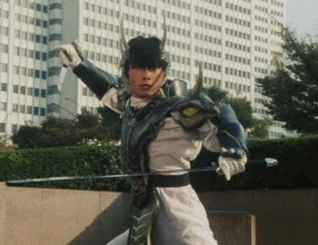 光戦隊マスクマンの「地帝剣士ウナス」。アキラ(ブルーマスク)にヨロイドグラーの鎧と合体。アキラと言えば、中国武術と拳法の達人であり、マスクマンの中でもかなり戦闘力の高い戦士でしたが、そのアキラが言わば「ダークアキラ」となって、口から光線を吐いたり、二刀流で仲間に襲いかかる姿は強烈でしたね。