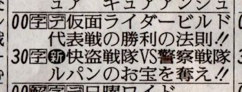 パトレンジャーだけの表記になるのか、あるいはルパンレンジャーだけか、それとも「パトルパ」か「パトVSルパ」か「警察vs快盗」になるのか?。何になるにしてもラテ欄泣かせのタイトルには違いない(苦笑)。