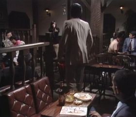 しかし、面白いのは、そのキャスティング。犯人役が火野正平氏、北川が探していた殺人犯役を石橋雅史氏、若いカップルの男役を『ジャッカー電撃隊』でクローバーキングを演じていた風戸佑介氏、犯人が探す医者役を宇宙刑事シリーズのコム長官などでもお馴染みの西沢利明氏が演じていたり、中々濃いキャスティングだ。ちなみにスナックの名前は、「危険な約束」では、「旅路」だったが、七人の刑事では、「みちのく」となっていた。