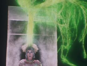 の呪文を唱え、妖術を使ってかなりジャスピオンを追いつめた。怖かったですね。ジュリーが「魔界転生」で演じた天草四郎時貞と同様に、ジャスピオンのブレーザーソードによって切り落とされた自分の首を腕に抱えて、不気味に笑っている姿は、えげつなかった。姉貴のギルマーザのほうは、カスタネット持って踊り出したり、少し笑える要素もあって怖い感じはしなかったのだが…。今のヒーローものではこんなことやれねーだろうな(苦笑)。