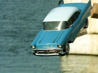 シボレー・ベルエア…『新ナイトライダー2000』と言うタイトルで日本では、テレビ放送よりも先にビデオ化されたナイトライダーの続編。好評であれば、今回のネクストのようにシリーズ化される予定になっていたのですが、残念ながら実現されなかった。マイケルが解体されかけていたキットを助けて、少しの間だけこのシボレー・ベルエアに取り付けていた。マイケルの愛車だけあってか、メインのナイト4000を差し置いて、そこそこの活躍を見せていた気がします(笑)。自動走行はできるようですが、スピードも足回りも当然ごく普通の性能。分子結合核もないので、ボディの強度もごく普通。劇中では、ナイト4000が水上走行するシーンが見られましたが、実物大の模型を使って描写されていたのが何気に凄かった。一方、ベルエアは、パトカーの追跡から逃れるために、海へ飛び込むシーンがありましたが、しかし、潜水艇になるわけでもなく、そのままひたすら海の底へ沈むだけと言う…。車内の密閉率は高く、酸素も25分も持つらしいですが、この後マイケル達は、どのようにして地上へ戻ったのか気になるところです…。