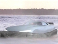 バイパー…武力に頼らず最先端の機能を使って悪人達を懲らしめたナイト2000に対し、こちらは、ミサイルやらパルスやらディフェンダー(武装)モードでど派手に武装し、悪人達を撃滅していた『ハイテク武装車バイパー』シリーズ。第4シーズンに当たる『ハイテク武装車新バイパー』の初回「チーム再結成(THE RETURN)」では、FBI捜査官のキャトレットを人質にとって逃走する犯人達のボートを止めるため、主人公ジョー・アスター達が乗るバイパー(ディフェンダーモード)が桟橋の上に立ち止まってフックを撃ち込み、ボートを引き止めようとする。ボートに車体を持っていかれないように態勢を維持しようとするが、タイヤを激しく回転させたため、その軋みに耐え切れず桟橋が崩れて、バイパーが海へ転落してしまう。完全に海の底に沈んでしまったバイパーが水中から脱出するために使ったのが「ホバークラフトモード」。第4シーズンから新たに加えられた新機能。CGで描写されていますが、海底へ沈んでからホバークラフトに変形して、海上へ浮上し、ボートを追跡するまでの描写が中々細かく描かれており、それなりに見応えはあります。ナイト3000も潜水艇なり、ホバークラフトなり、ボートなりにトランスフォームして海から脱出すればもっと面白くなったかも…(苦笑)。