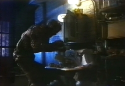1986年の作品なので、当然ながらCG技術はまだまだ発展途上の時代。特殊メイクや多種多様の精巧なパペットだけで、あれほどの映像を作り上げたのは、やはり凄いとしか言いようがない。エルム街の悪夢やバタリアンなど、当時のホラー映画は、この手法で作られたものがほとんどでしたね。90年代は、まだ地上波のゴールデン帯でホラー映画がよく放送されていました。ちなみに次回の予告編の映像も入っていて、紹介されていたのは『キャノンボール2』。そう言えば、2の吹替え入りDVDはまだ未発売だなあ…。