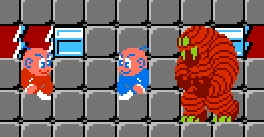 各ワールドの4面目にいつも登場するこいつ、苦手(汗)。ユニゴンって名前らしいですが、実は、まだ一度も倒したことがありません(汗)。色々倒し方は、あるみたいですが、動きが早いのと火の玉を撃ってくるのであっという間にやられてしまいます。あと目を縦に二つつけている塗り壁みたいな奴、ハカイダンっていうらしいが、しつこく獲り付いてきて動きを止められてしまうので非常にうっとうしい。ドラゴン系の敵は宝剣がないと倒せないらしいです。メテオみたいに宇宙技を出せるならジュピタァー、リアリィ?でユニゴンを粉砕してやりたい(爆)。