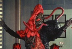 もう何度も見ている映画ですが、バーホーベンのバイオレンス描写の生々しさが本当に凄まじい。当時のSFX技術の独特の不思議さや不気味さが映像に色濃く滲み出ています。ダグラスが頭に埋め込まれた発信装置を鼻から引っこ抜くシーンの痛々しさ、火星のステーションでダグラスがかぶっていたおばさんのマスクが暴走して、マスクがスライス状に分断されるシーン、空気のない地上に放り出されたダグラス達の目が今にも飛び出しそうになるシーンなどなど、とにかくインパクトのある映像が次から次へ続出する。今時の映画のバイオレンス描写と見比べると、若干柔く見えるようになったが(最近のほうがかなりリアルでどぎつさがある)、20年経った今でも映像は、鮮烈だ。