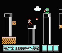で、今回の思い出の一本は、特別思い入れがあるわけではないが、スーパーマリオの続編『スーパーマリオブラザーズ3』。言わずもがなスーパーマリオブラザーズの続編ですが、「2」を無視してなぜ「3」かと言うと、「2」があまりにも難しすぎたから。それに「2」は、ディスクシテスムのほうで発売されたため、リアルタイムでプレイできなかった事もあまり思い入れがない理由。「3」は、カセットで発売されたが、結局自分で買う事はなく、親戚のうちで遊ばしてもらったが、1作目よりも画も内容もパワーアップしていて、1ワールドごとのイベント、アイテム、敵の数も多くなった。画面は、縦横無尽に自由にスクロールするようになり、仕掛けも様々に工夫されていて、当時物凄く衝撃を受けた。が、ある部分で、自分のゲーム熱を冷ましたゲームでもあった。スーパーマリオを難なくクリアしたからと思ってタカをくくっていたのが甘かった。何が煩わしかったのかと言えば、「3」のマリオは、空を飛ぶこと。一作目は、きのことフラワーしかなかったが、「3」では、はっぱをとることによって、しっぽマリオになって、しっぽを振っている間空中に浮かぶ事ができるのだが、その操作がなかなかうまくやれず、当時は、ワールド2あたりで挫折してしまった。しかも、しっぽマリオは、助走をつけてレベルがある一定のところに達すると、ずっと空を飛び続ける事ができるのだが、当時そんなことは知らなかった。しっぽマリオを使わないとクリアできない面もあるという。数年前に、機会があってもう一度チャレンジしてみたら、なんとかクッパがいるワールド8までたどり着く事ができたが、戦車や戦艦の容赦なき大砲攻め&スピーディーな強制スクロールにより、あえなく撃沈。白お化け(テレサと名づけられているらしい)が苦手だった。