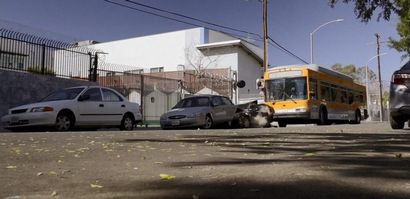 犯人の車を追跡中のマータフが運転するバスが路駐の車に次々と豪快にぶつかっていく。およそ5、6台ぐらいは破壊していたでしょうか。向こうのテレビ界はまだまだ景気が良いですね(笑。